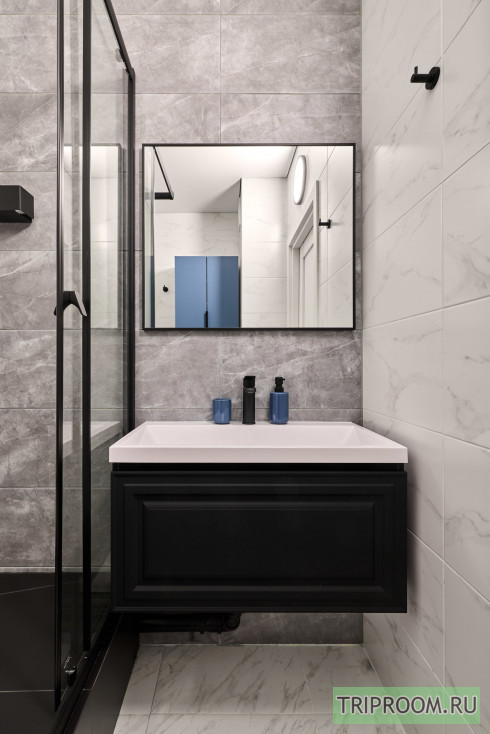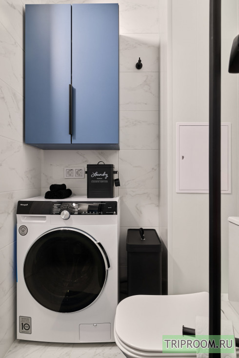 Современный санузел оснащён душевой зоной, стиральной машиной, раковиной с зеркалом и базовыми удобствами. В квартире аккуратно, светло и тихо — окна выходят во двор.